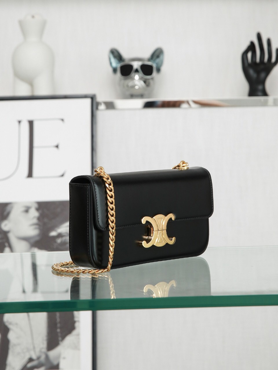 CHAIN SHOULDER BAG TRIOMPHE IN SHINY CALFSKIN