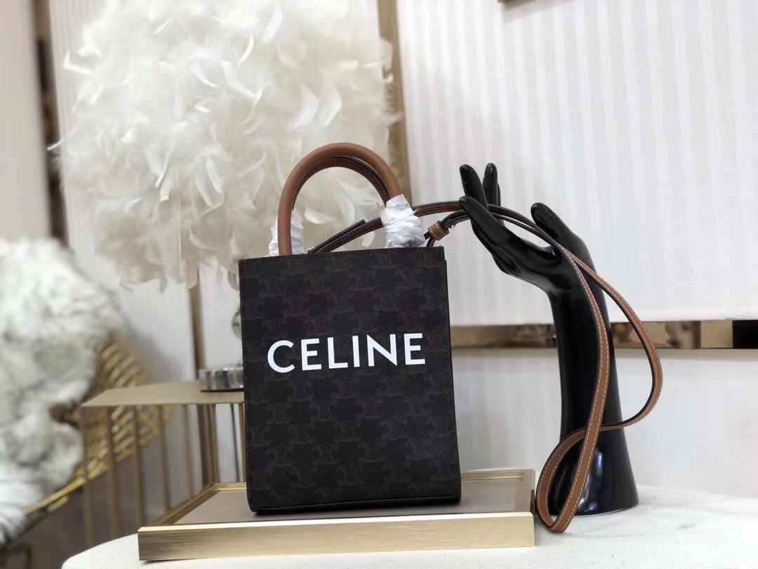 MINI VERTICAL CABAS IN TRIOMPHE CANVAS AND CALFSKIN WITH CELINE PRINT