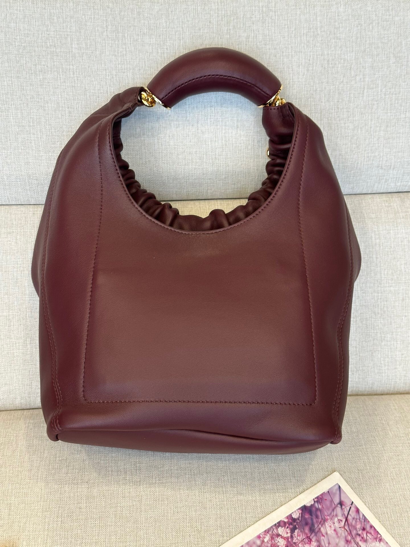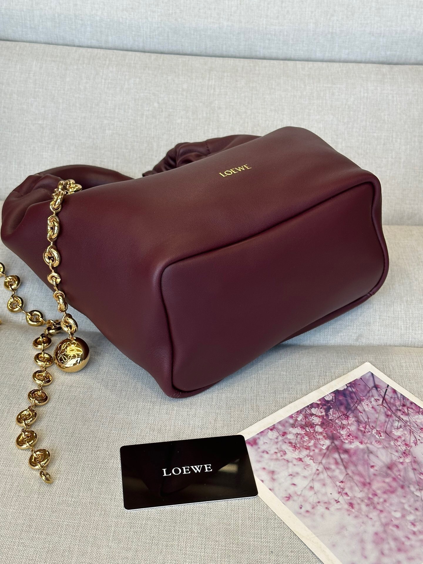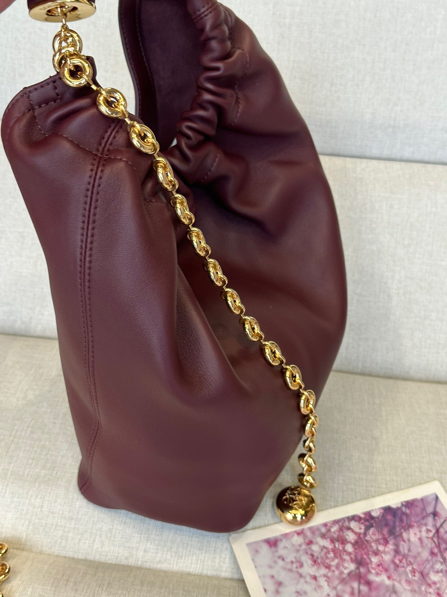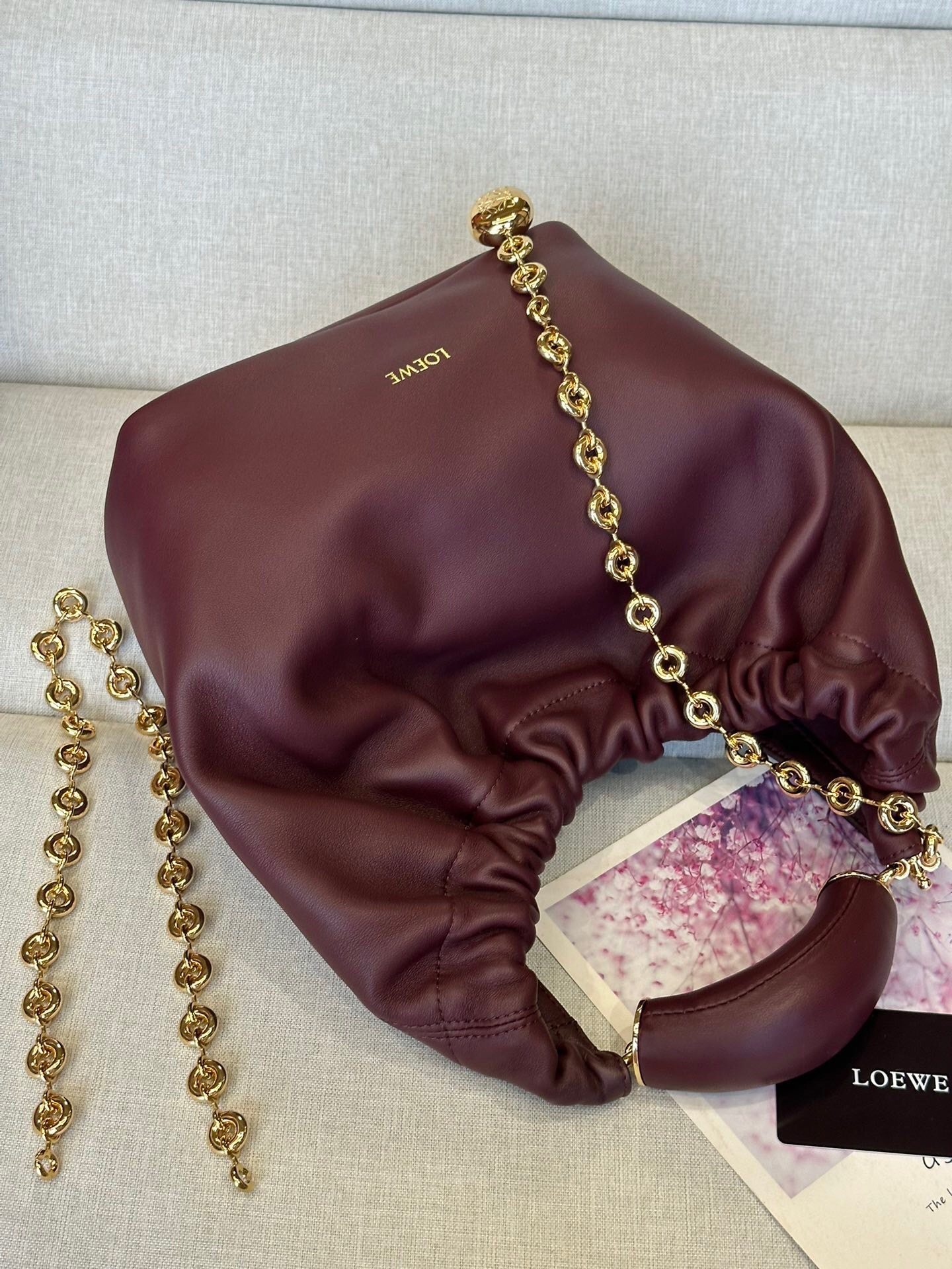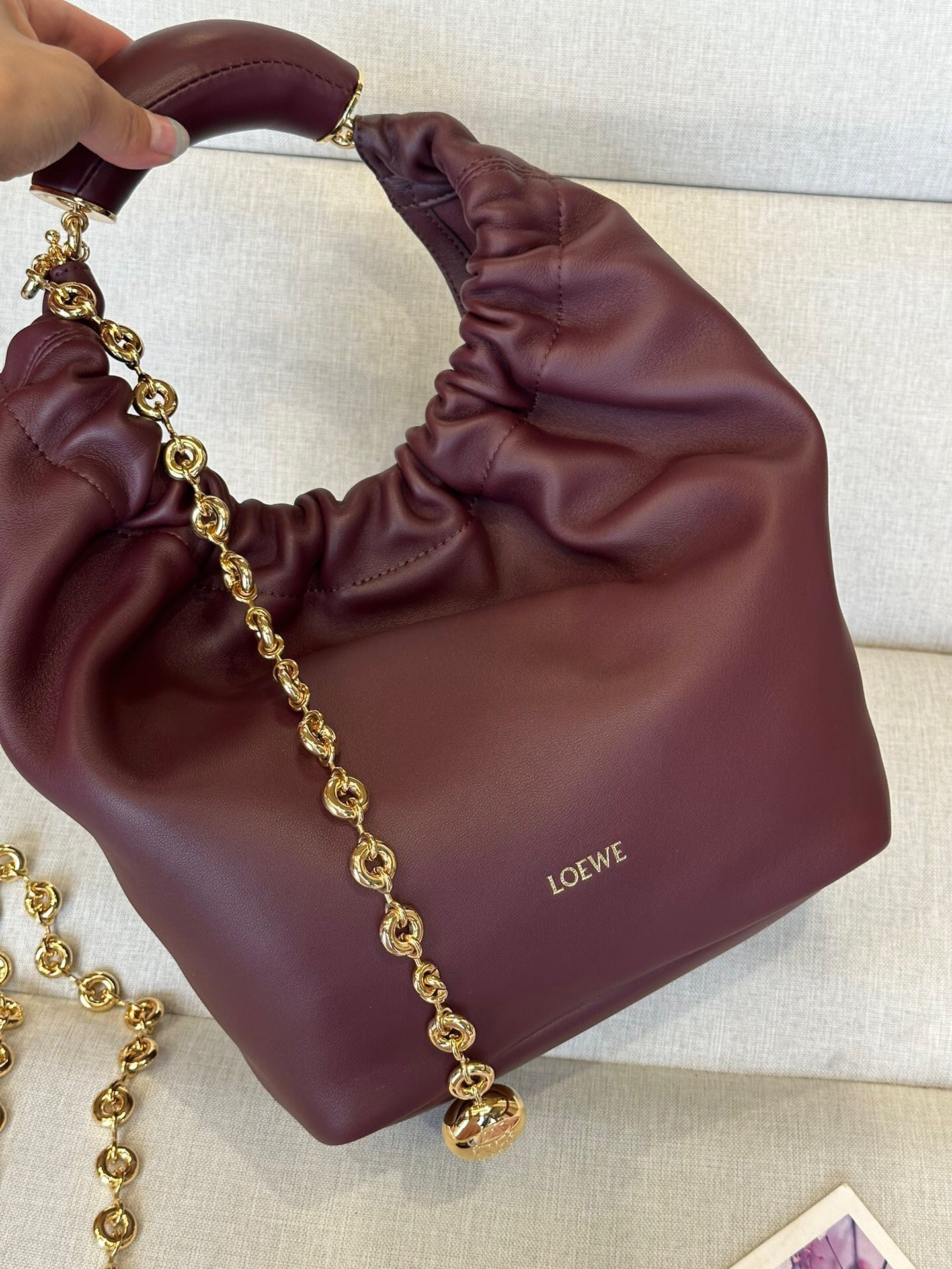 The bags debuted at Loewe's Fall '23 runway show were inspired by '70s styles from the brand's archives. Made from buttery soft leather, this small 'Squeeze' tote is ruched at the top and has a curved handle with a gold-tone chain. There's a zipped pocket inside for your phone or keys.