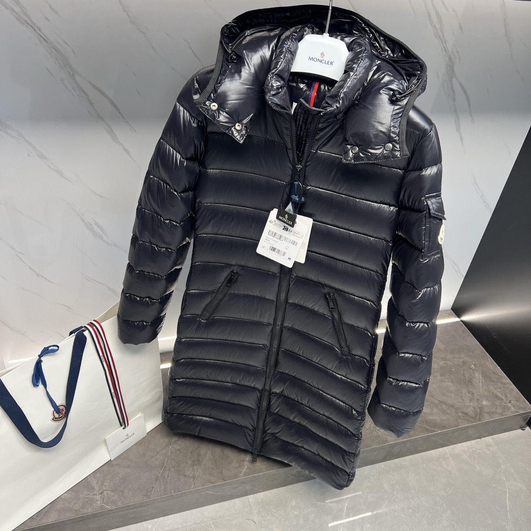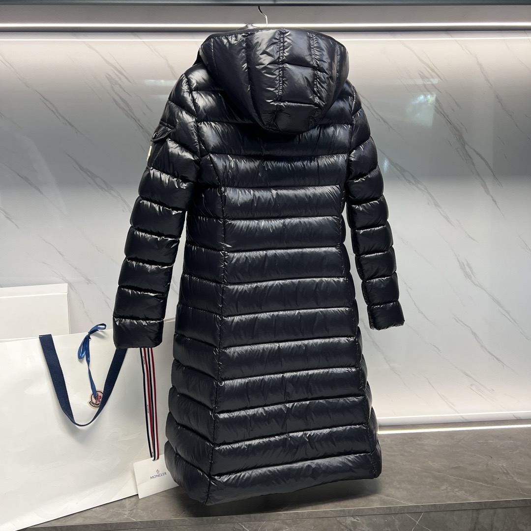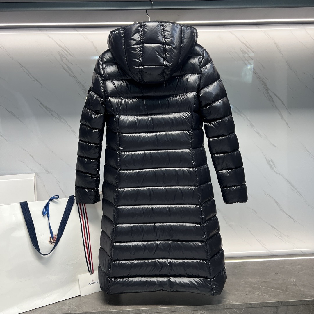 The Moka long down jacket takes a tailored approach to Moncler's iconic nylon laqué. A streamlined, slim silhouette and tight boudin quilting hug the body, providing warmth without adding bulk or volume. A detachable hood adapts the down coat to any weather condition.