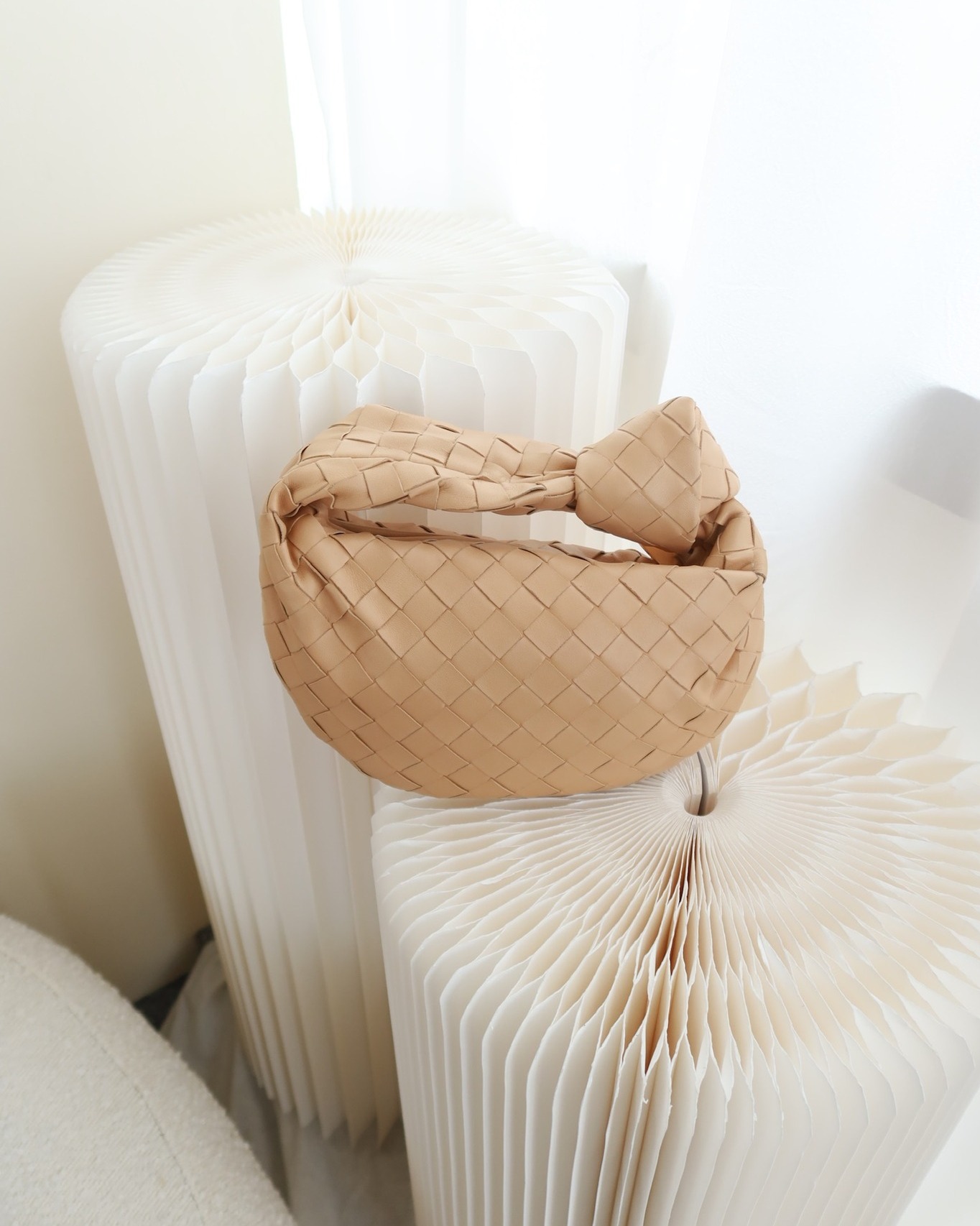 Bottega Veneta Mini Jodie Clutch Bag Intrecciato Almond Lambskin