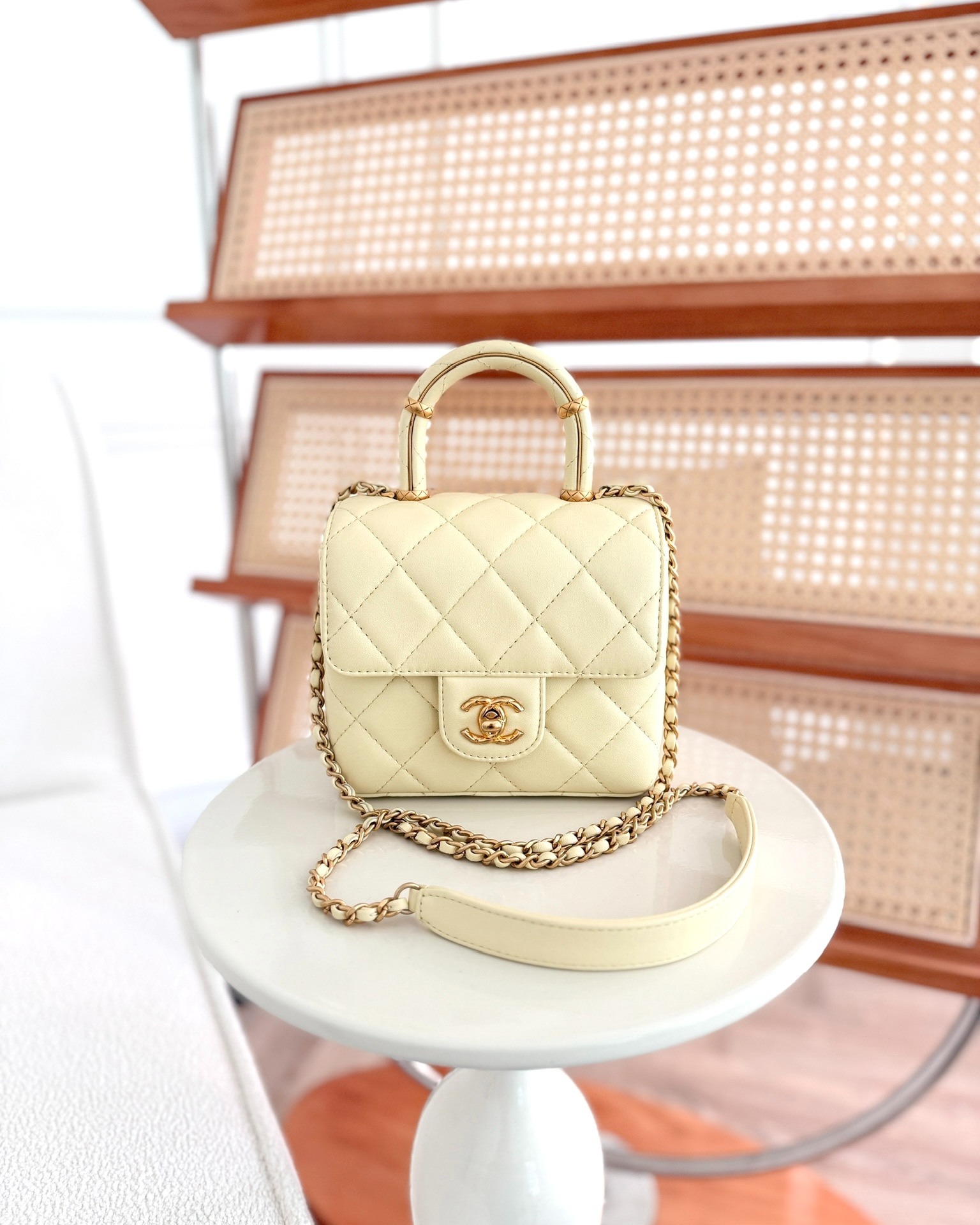 Chanel Crush Top Handle Flap Bag Yellow Lambskin Aged