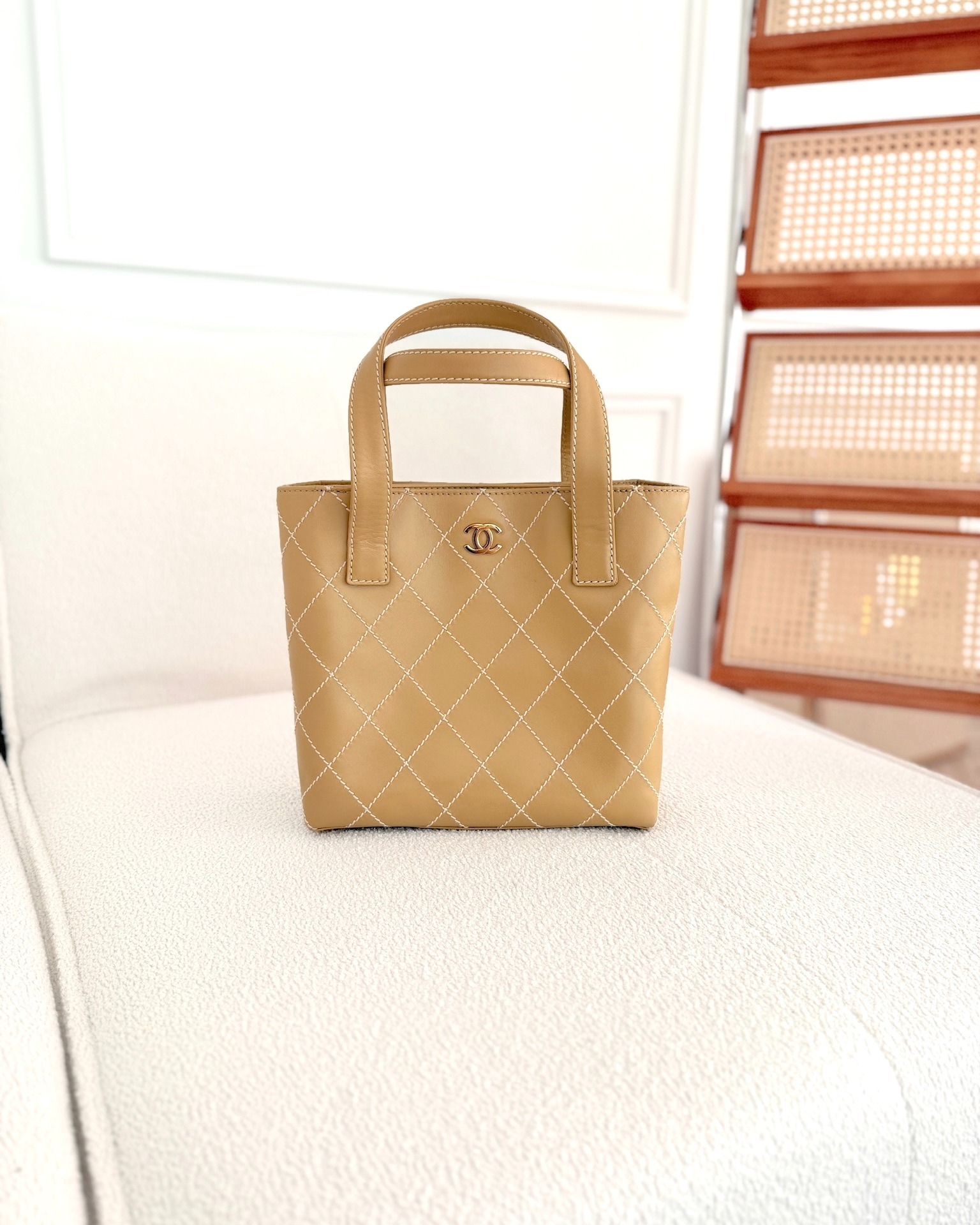 Chanel Vintage Quilted CC Tote Bag Beige Calfskin