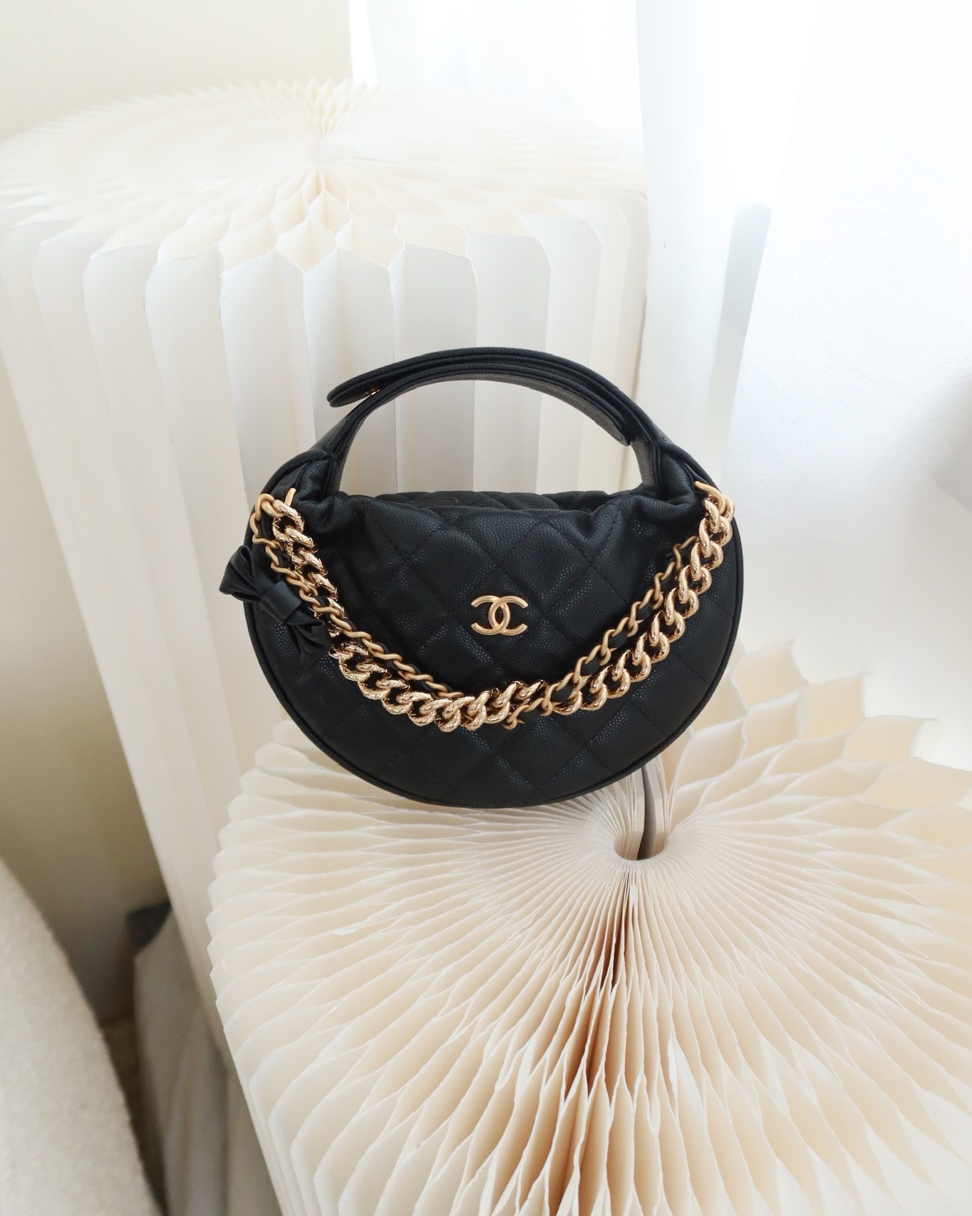 Chanel Bow Hobo Pouch Black Caviar 24S
