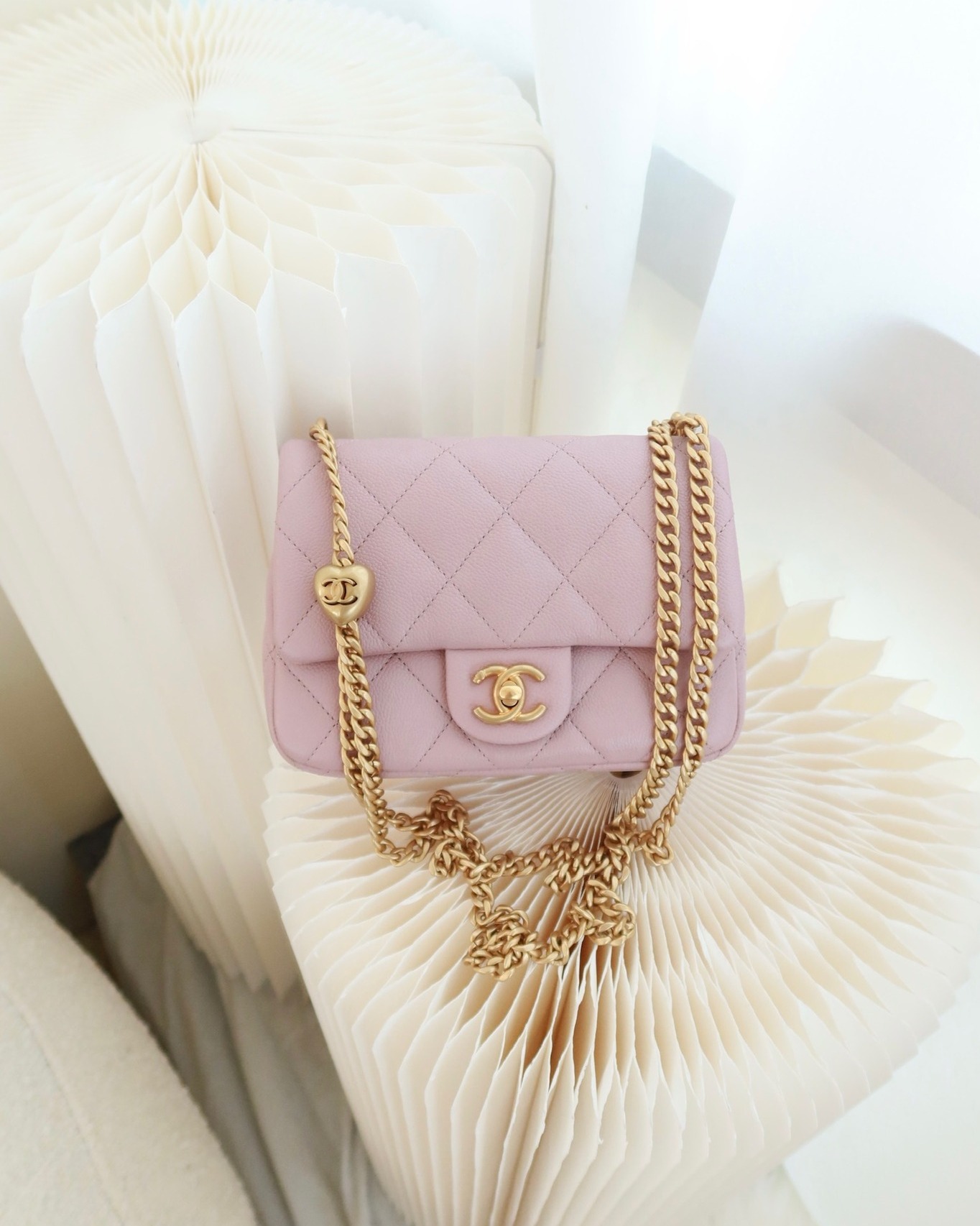 Chanel Mini Flap Bag Heart Adjustable Chain Dusty Pink Caviar Aged