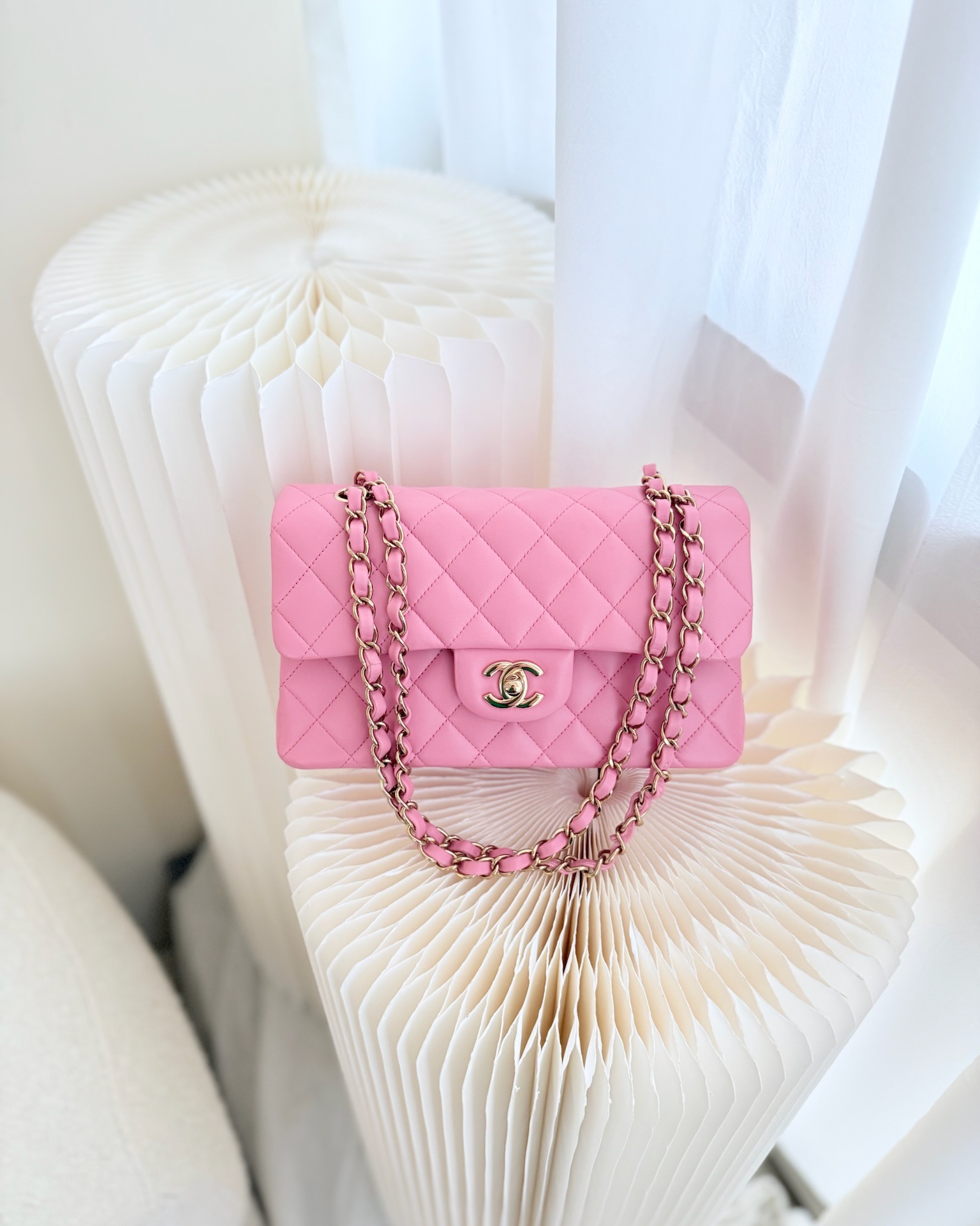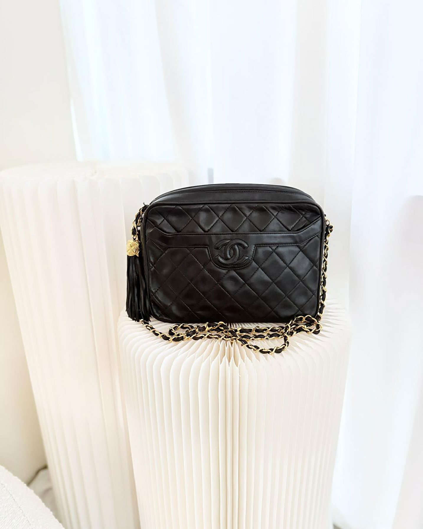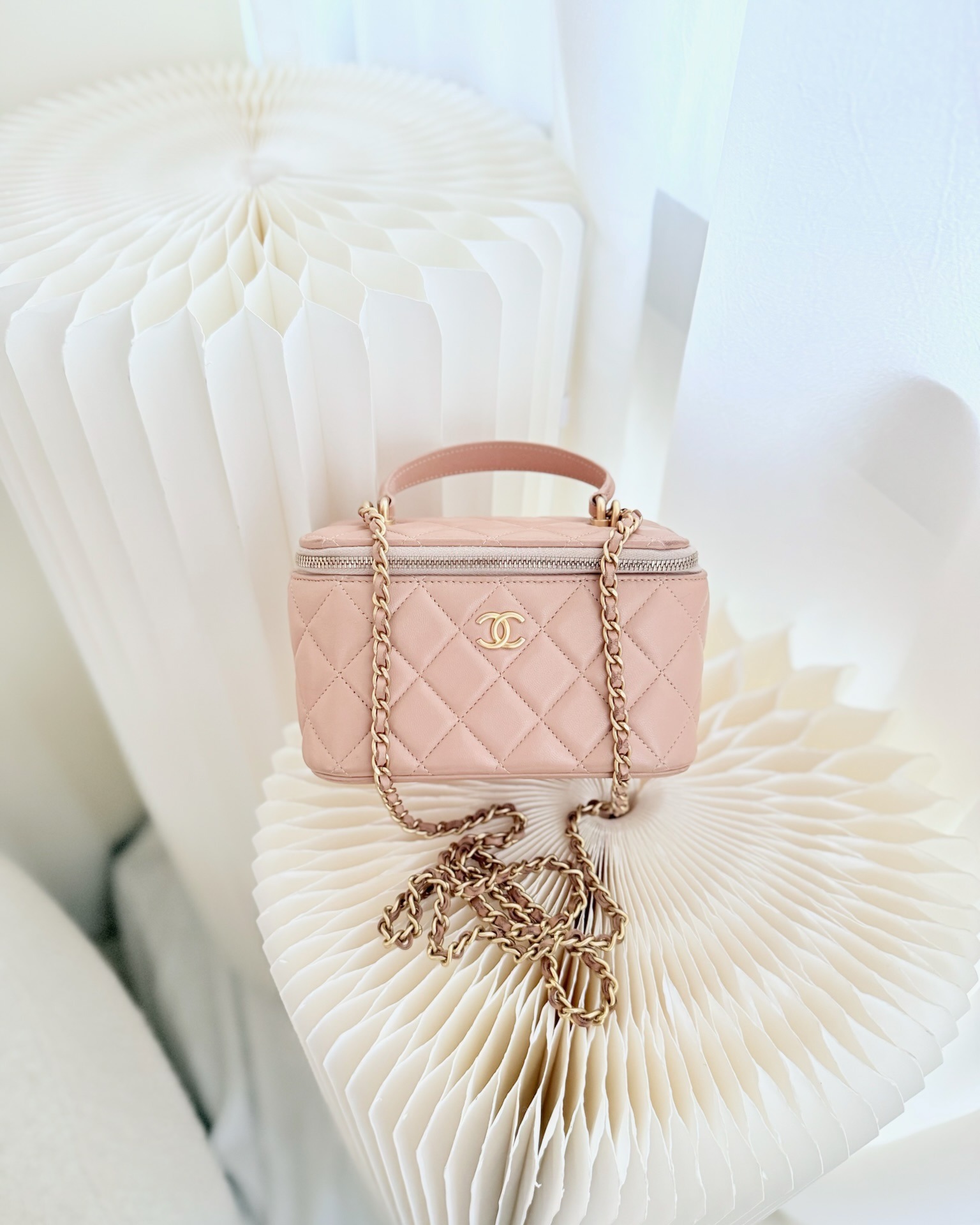 Chanel Vanity Rectangular Top Handle Beige Lambskin Aged Gold Hardware