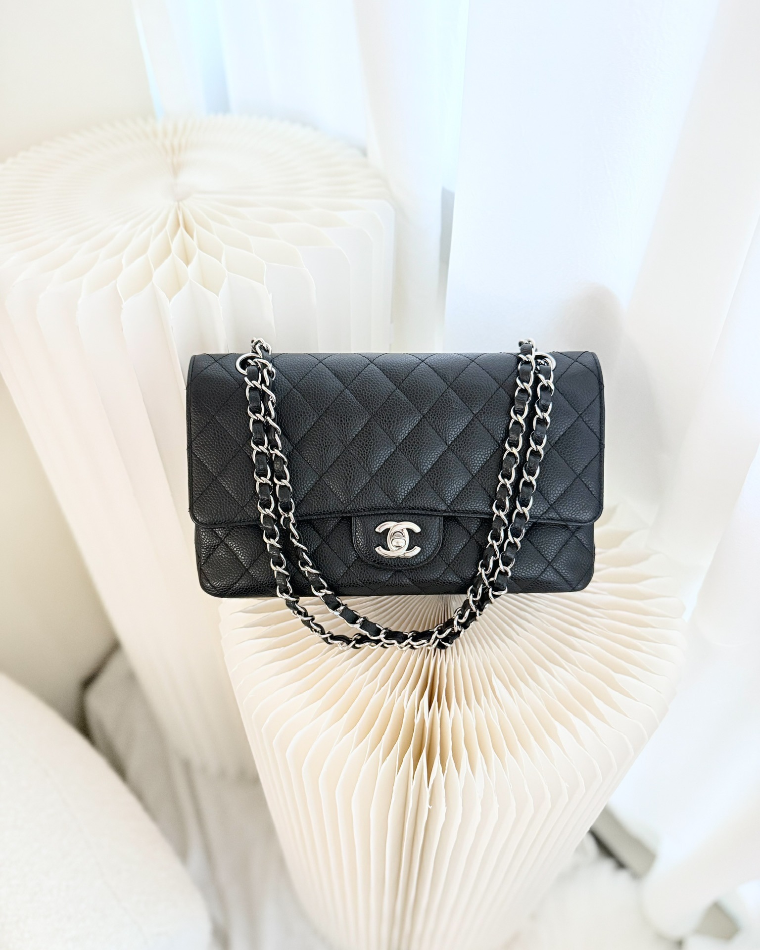 Chanel Classic M/L Medium Flap Quilted Black Caviar Silver Hardware