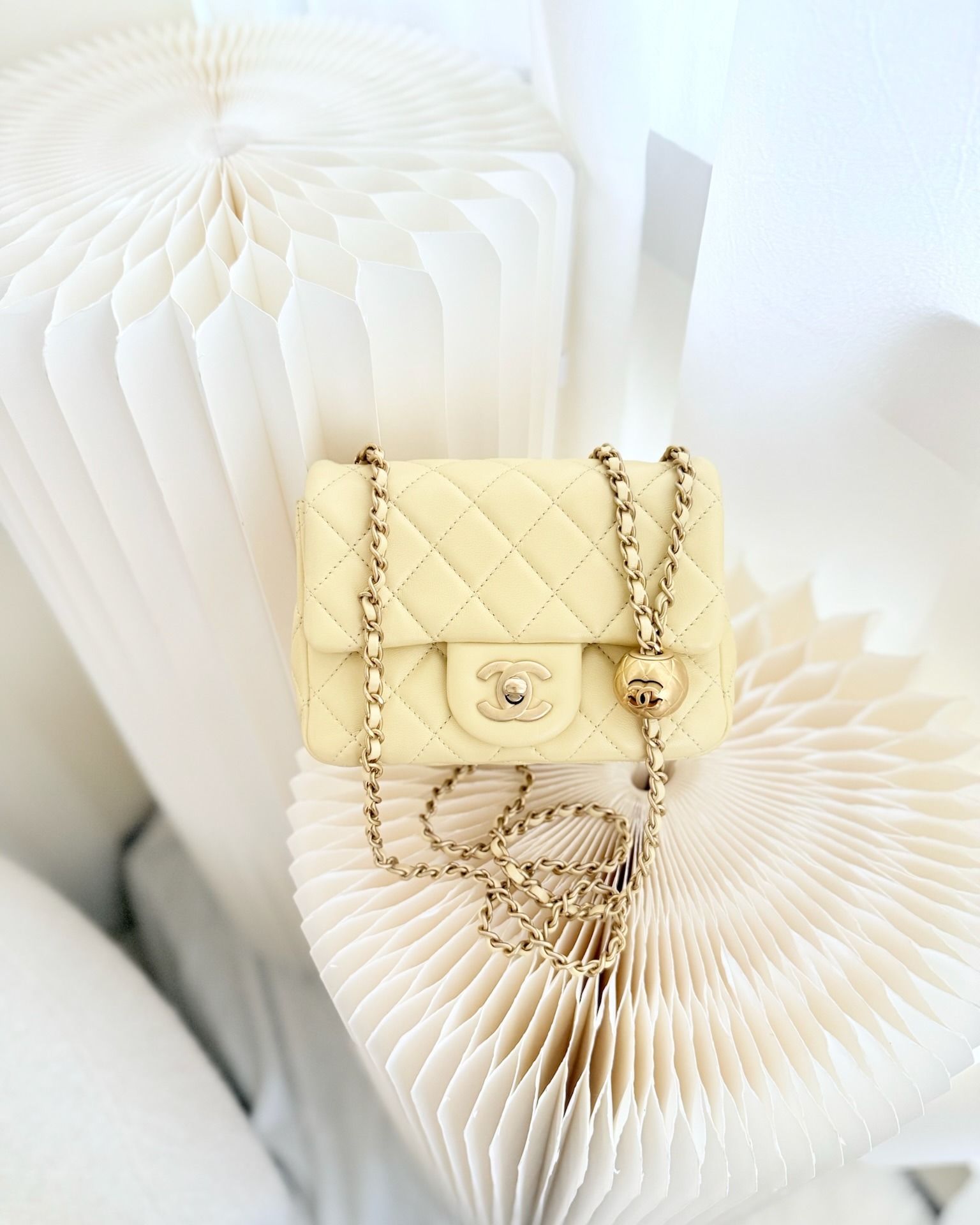 Chanel Pearl Crush Mini Square Quilted Yellow Lambskin Aged Gold Hardware