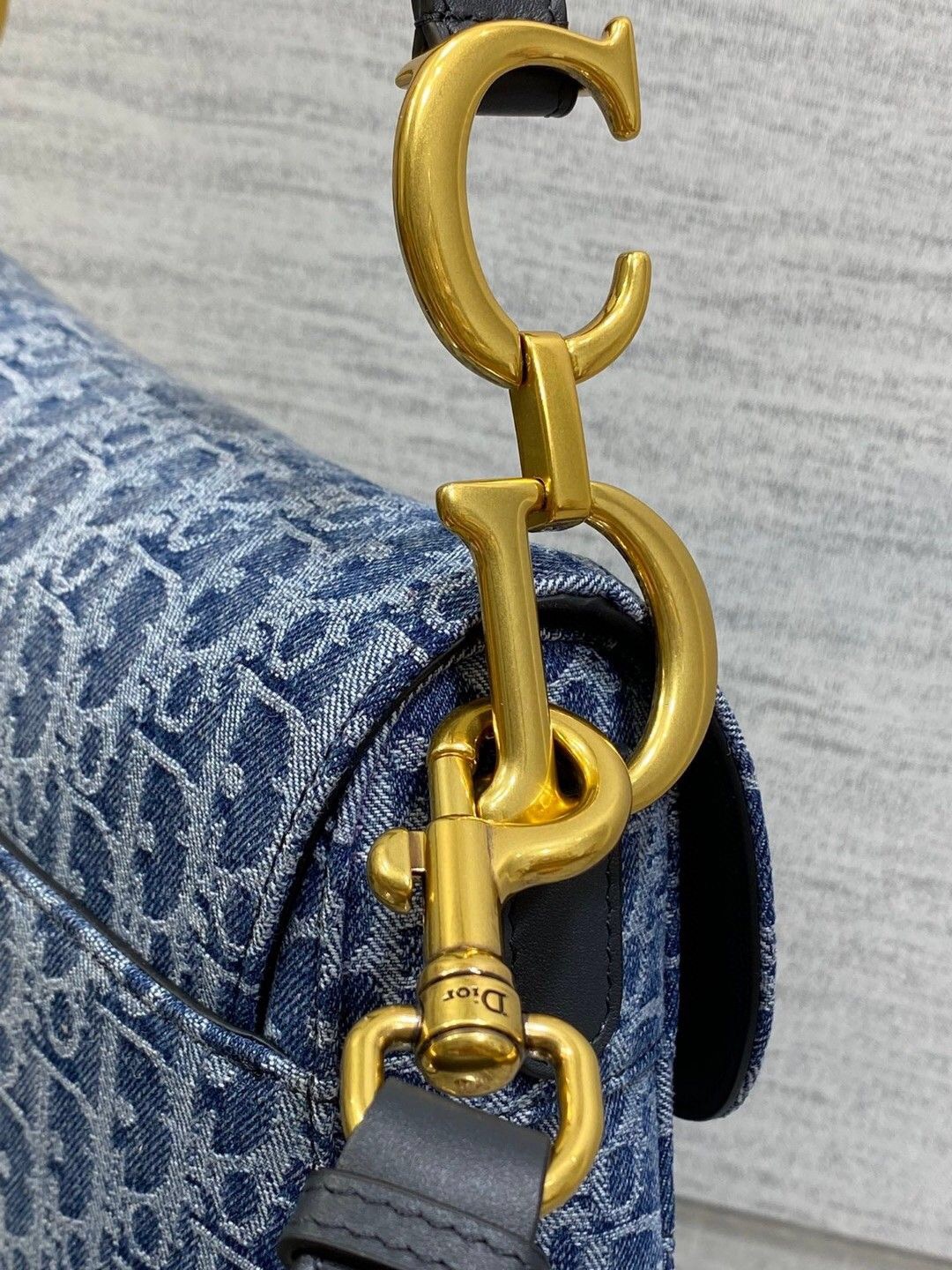 DetailMaria Grazia Chiuri gives a fresh update to the iconic Saddle bag. The blue style is constructed in Denim Dior Oblique jacquard, offering a new take on the iconic House motif with the modern appeal of an irregular stonewashed effect. Its legendary design features a Saddle flap with a D stirrup strap and magnetic pull, as well as an antique gold-finish metal CD signature on either side of the handle. Equipped with a thin strap that is both adjustable and removable, the Saddle bag can be carried by hand, worn over the shoulder or crossbody.