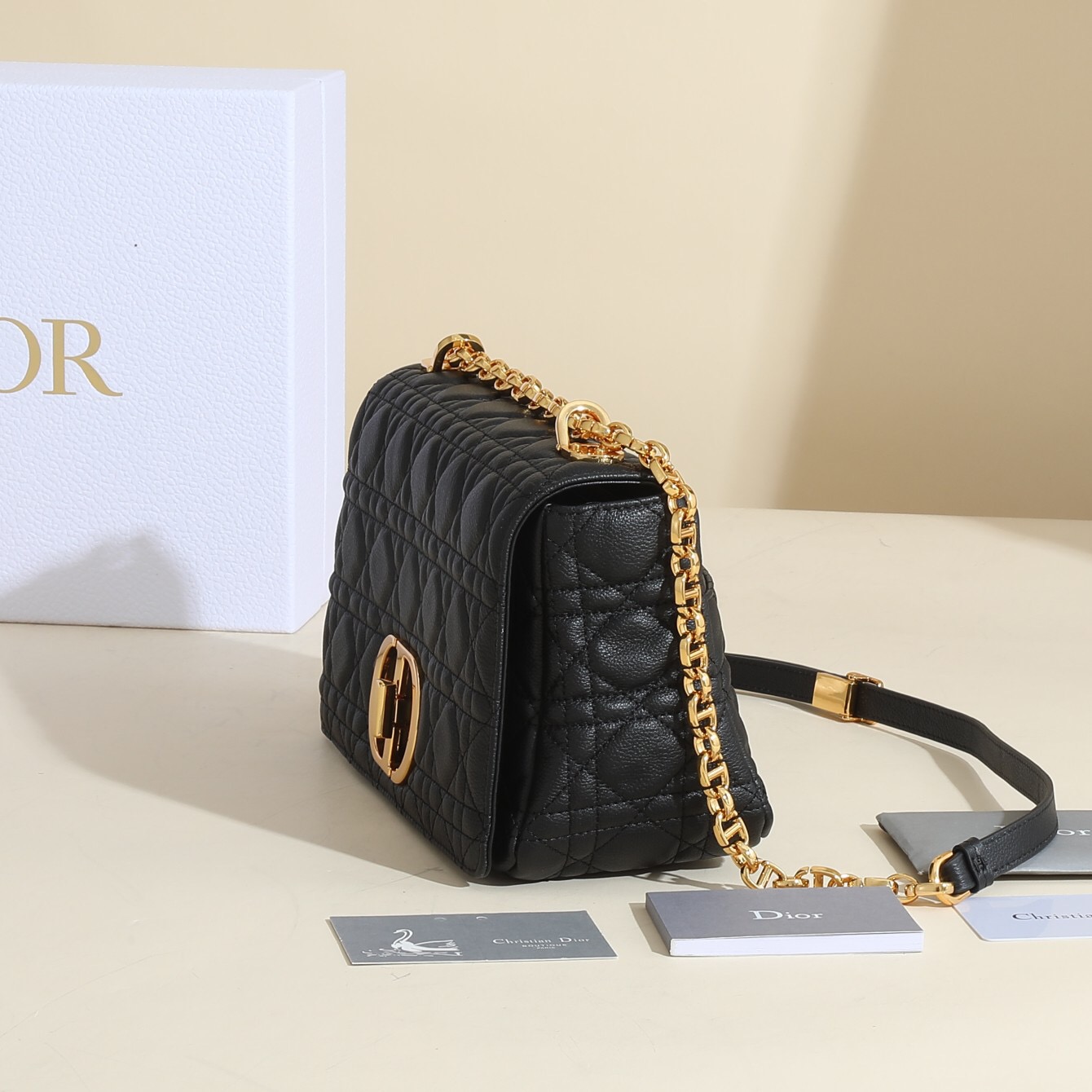 DetailThe Dior Caro bag combines modernity with timeless elegance. The style is crafted in black supple calfskin with Cannage stitching. The bag showcases a flap adorned with an antique gold-finish metal CD twist clasp, inspired by the seal of a Christian Dior perfume bottle. The detachable chain shoulder strap with CD signature links allows the medium bag to be carried by hand, worn over the shoulder or crossbody, and may be replaced by one of the House's wide embroidered straps for day or evening attire.