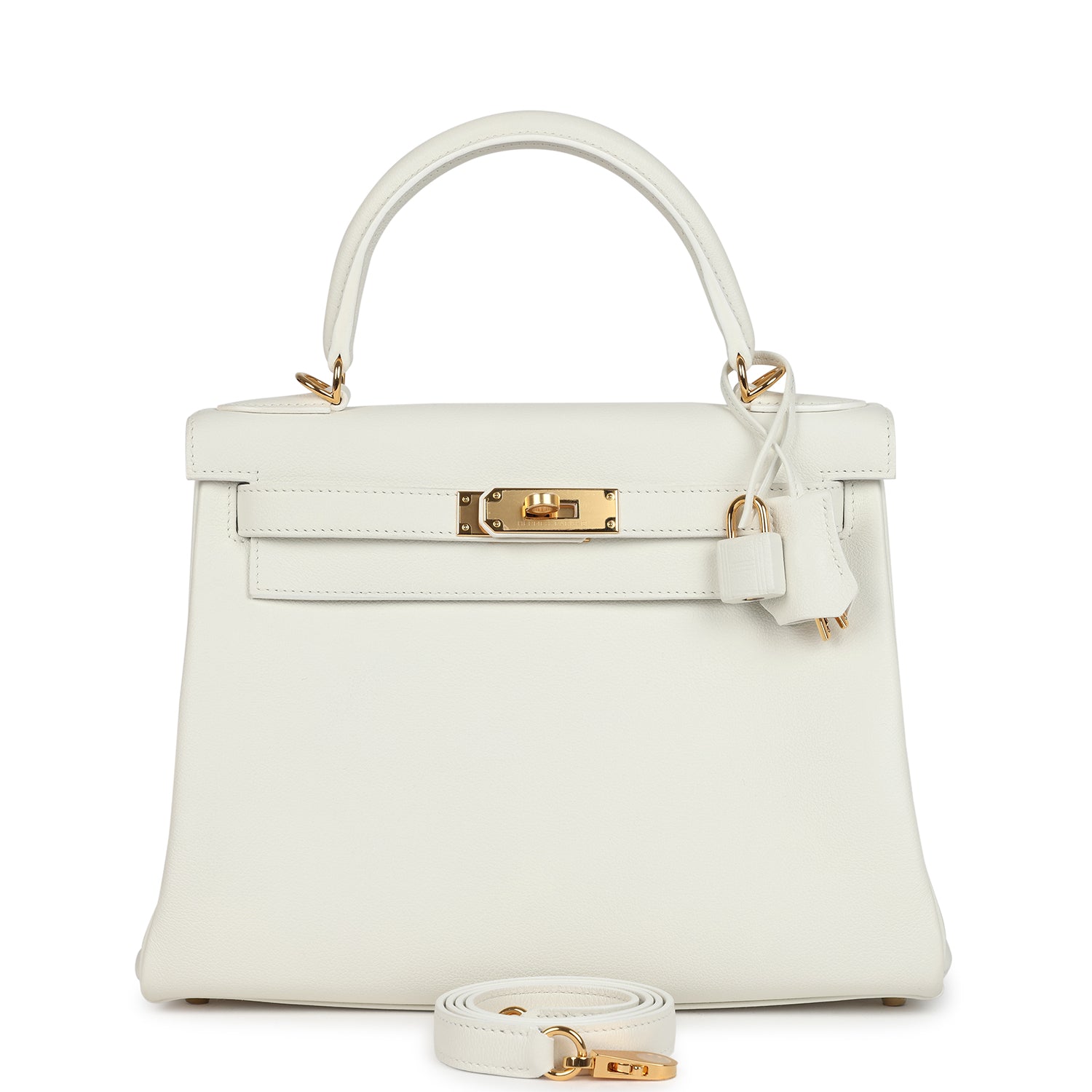 Hermès Kelly Retourne 28 White Evercolor Gold Hardware