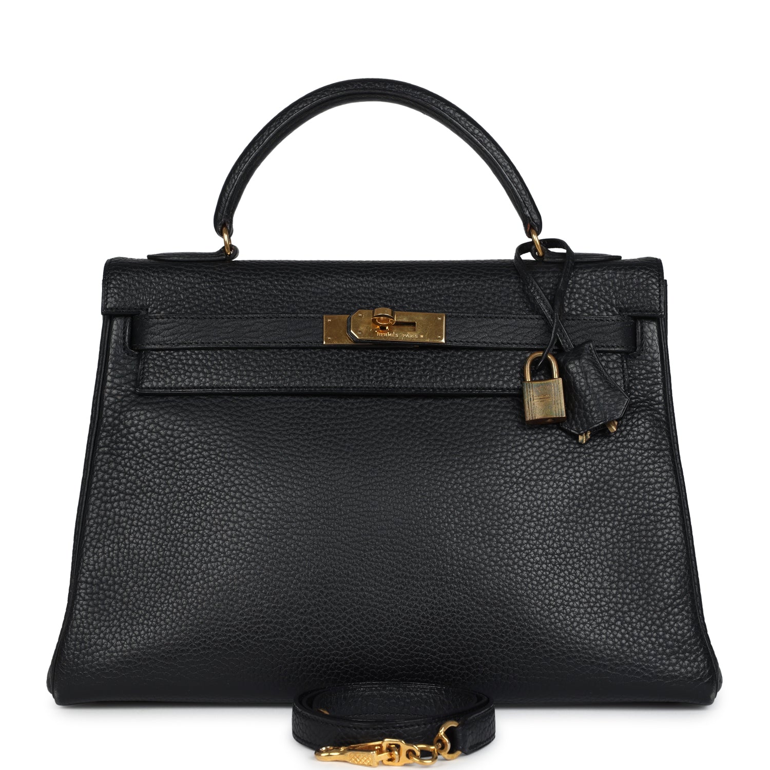 Vintage Hermès Kelly Retourne 32 Black Ardennes Gold Hardware