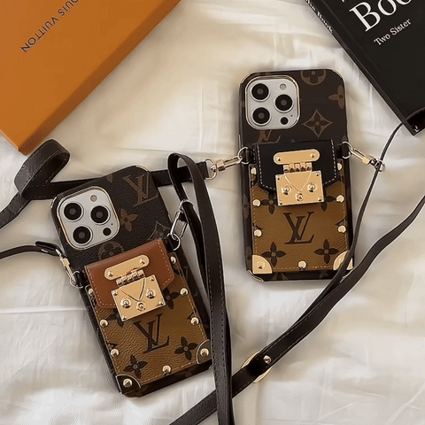 Home / STYLISH LUXURY IPHONE CASE / Monogram Leather V iPhone Wallet Case With Crossbody Strap